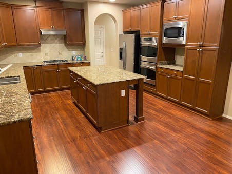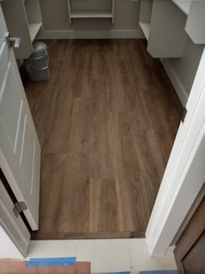 Below is one of our recent Jobs, we can install Vinyl Plank quickly and it's very forgiving and can transition smoothly from room to room...